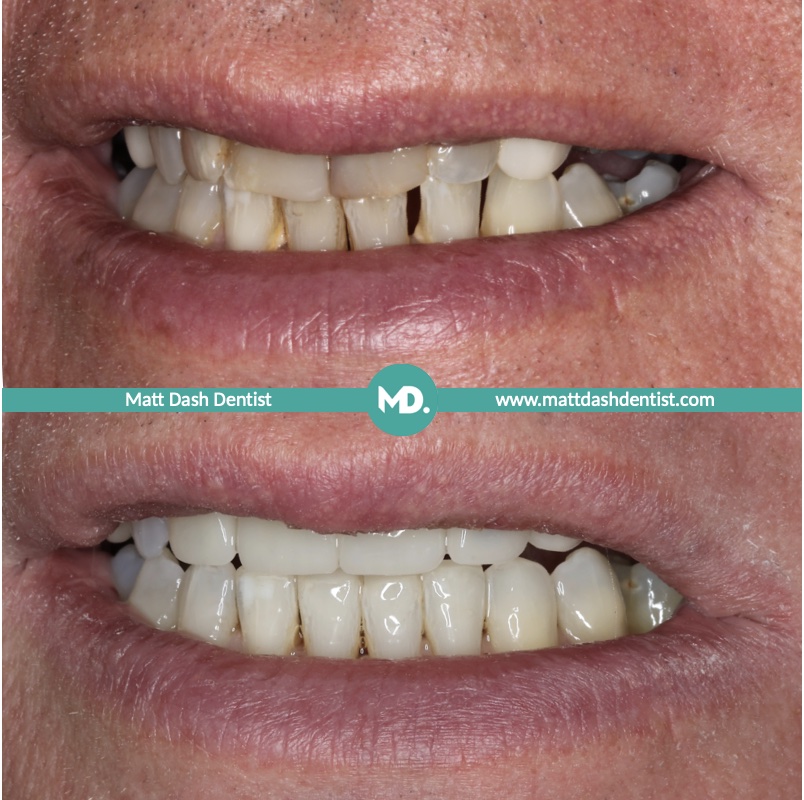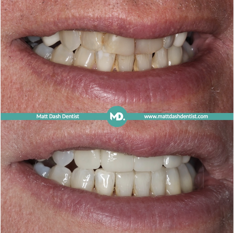 Smile Gallery > Smile Makeover (Invisalign – Tooth Whitening – Porcelain Restoration – Composite Bonding – Amalgam Replacement)